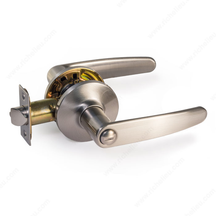 Leviers droits Série Newport en acier, rosace 2⅝″, réversibles et compatibles clés identiques. Norme ANSI/ADA. Offert chez Économat à Saint-Joseph-de-Beauce.